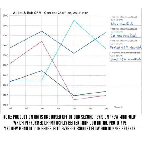 - Meticulously optimized design yields a 22% average increase in exhaust flow over the OEM exhaust manifold with less imbalance between runners (check out our flow testing results above)
